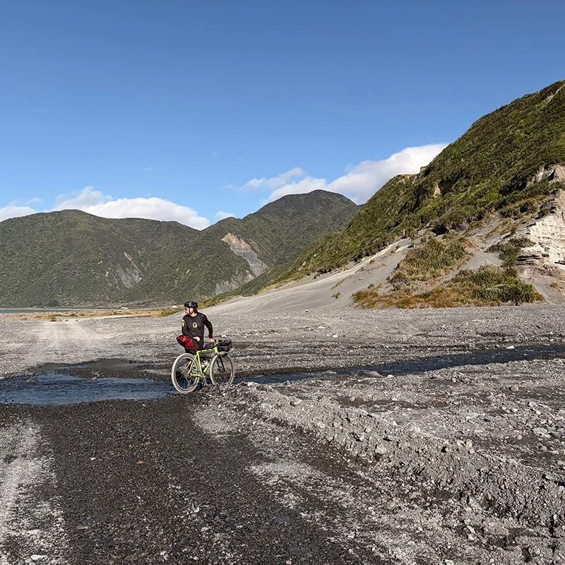 One of their first rides was the Remutaka Trail near Wellington on New Zealand’s North Island. The roughly 50-mile route followed sections of a historic railway line through dense forest before opening onto rugged coastal terrain, including stretches where riders had to walk their bikes across volcanic beaches.