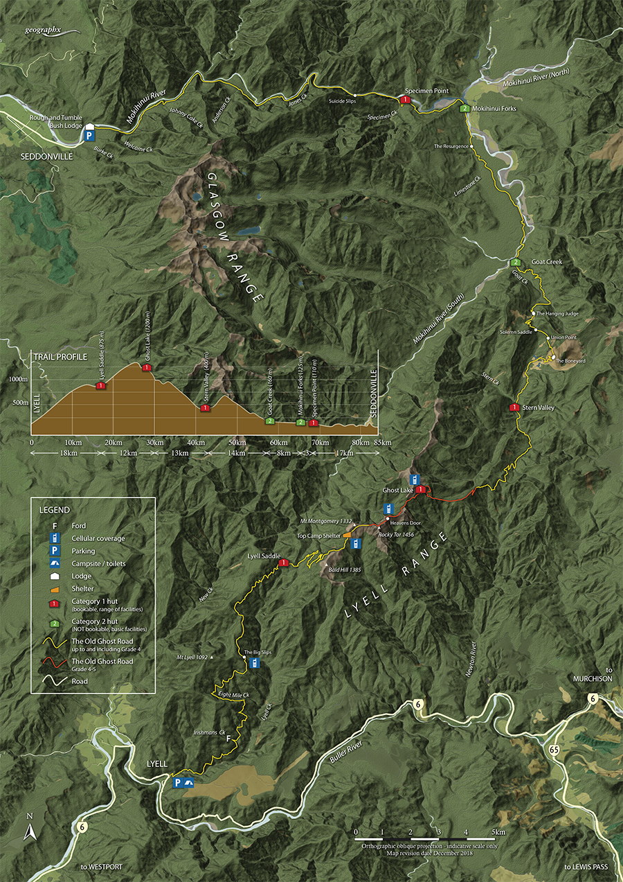 Located on the northwest side of New Zealand’s South Island, the Old Ghost Trail is a technical, remote bikepacking route that follows what was once a historic coal mining road through mountain terrain.